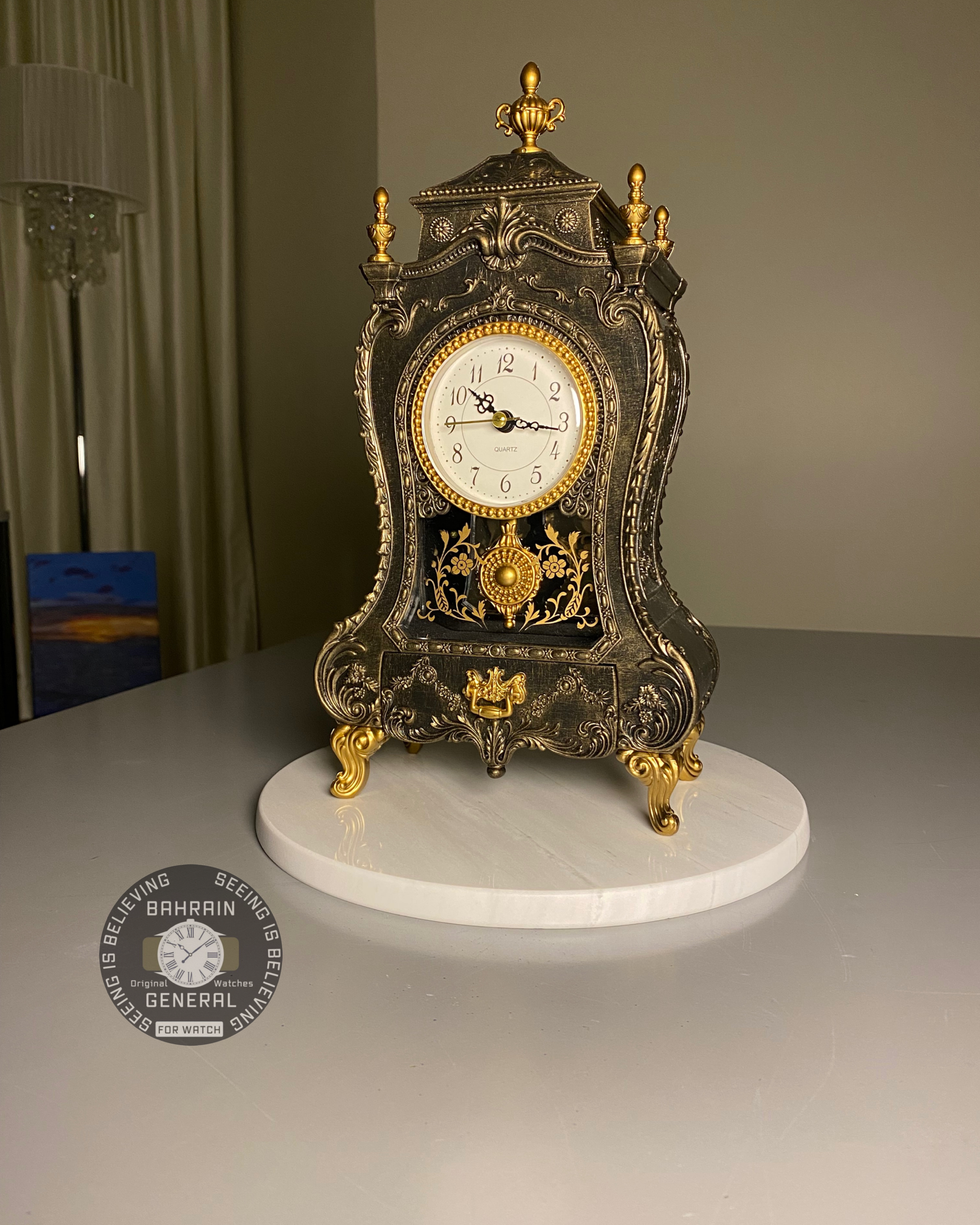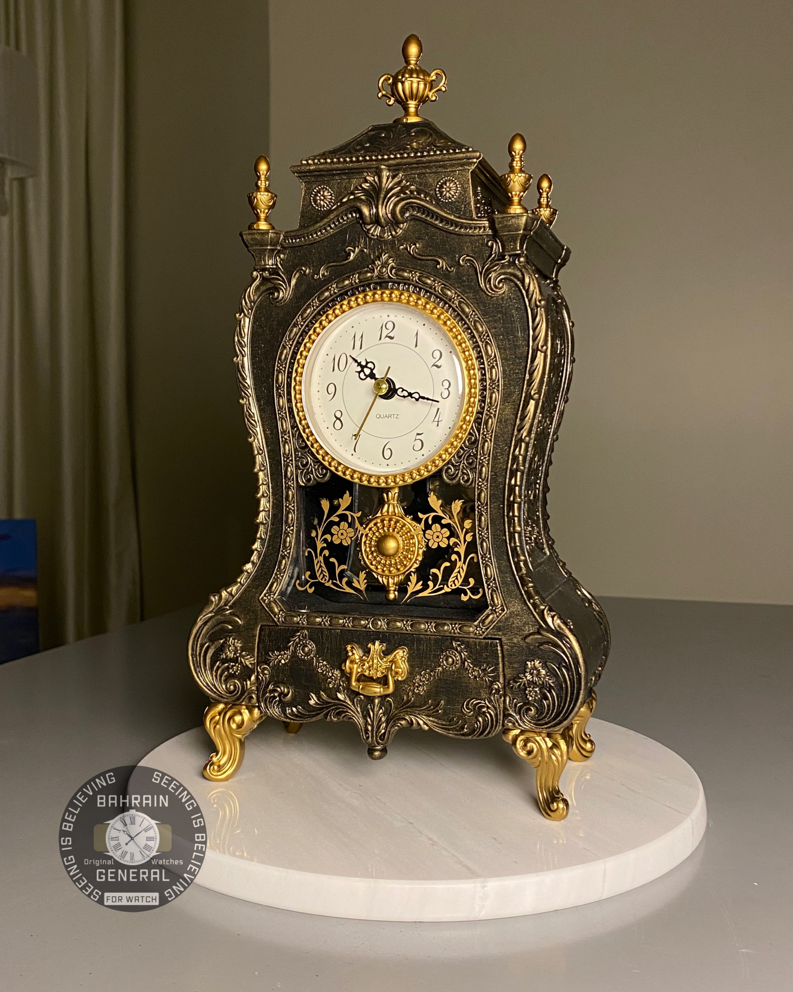 ساعة طاولة كلاسيكية مع درج أوروبي متأثرة بطراز ( الفيكتوري أو الباروك ) 🗝️📜